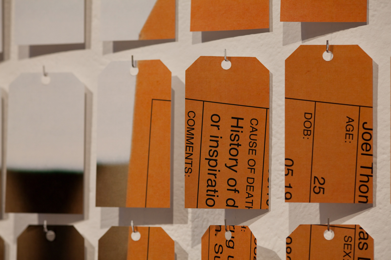 This project was a drug campaign targeted to drug addicts, potential drug addicts and families affected by drug abuse. The goal is to raise awareness and is a call to action to be involved in the lives of your loved ones. The bigger picture is a mosaic of the end result of drug abuse, death. Each tag has information on the back regarding people who have succumbed to drug addiction and abuse. The smaller book is a representation of the narrower path, recovery. The book contains stories of drug survival and the images are of the same as the mosaic. This was done to depict what could come into clear view.