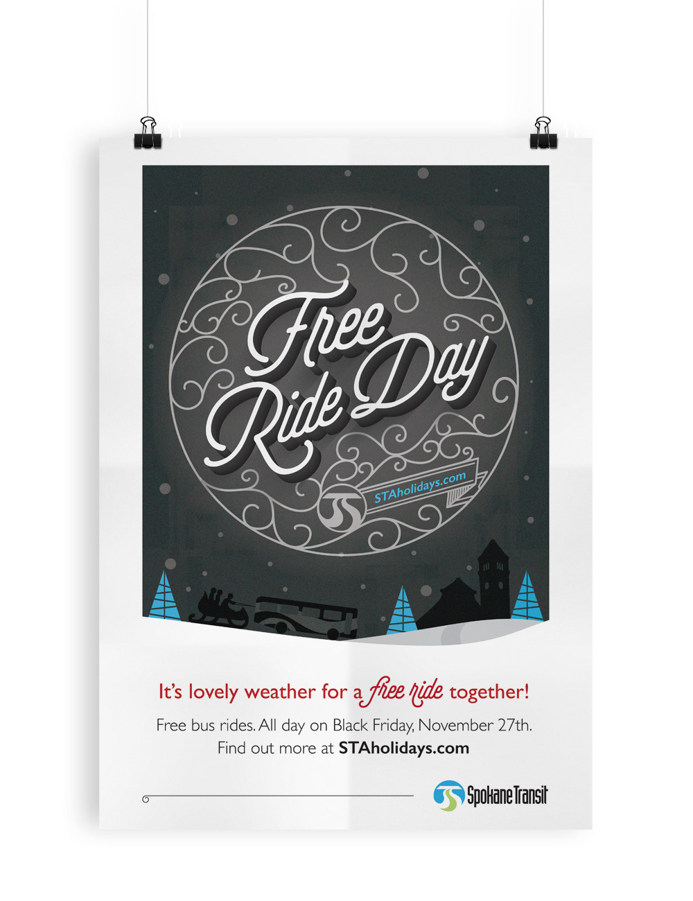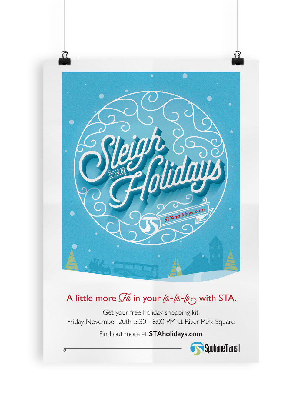 Sleigh the Holidays Campaign design for Spokane Transit Authority while at Desautel Hege.